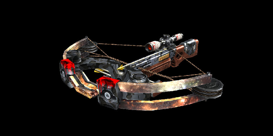 十字弩搭配荒野风格喷涂,威力极大,且无需换弹夹,近距离不开镜精准度高,中距离狙击手的标配。