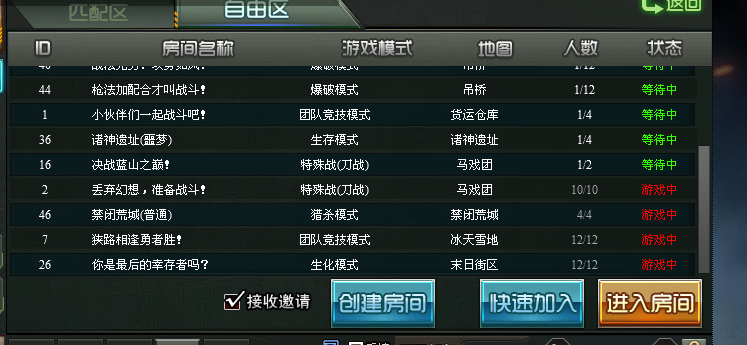特战英雄中玩家可以在自由区的频道内自由创建房间,选择自己喜欢的地图和模式对战。