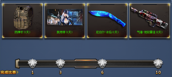 活动期间,在匹配区暴走枪王模式完成一定场次比赛,即可领奖。中途退出不计入活动。