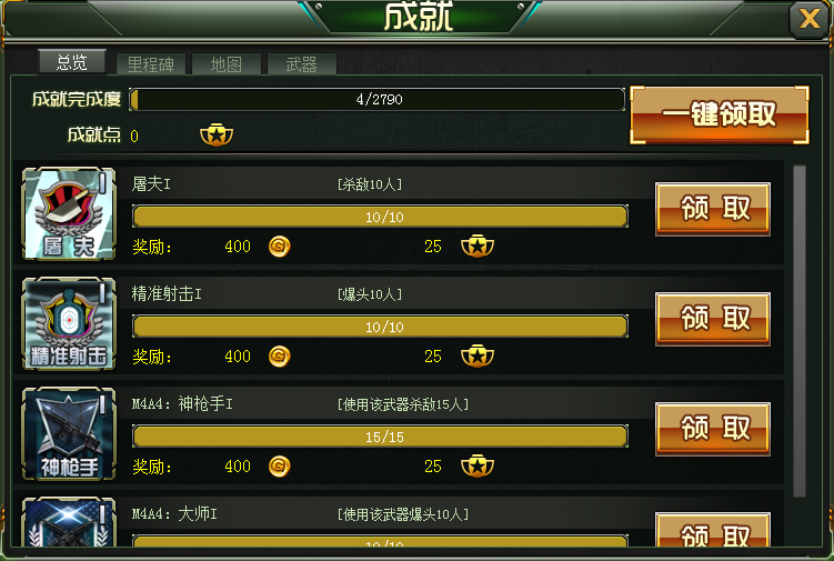 1. 成就新增一键领取功能,点击按钮即可一键领取成就。