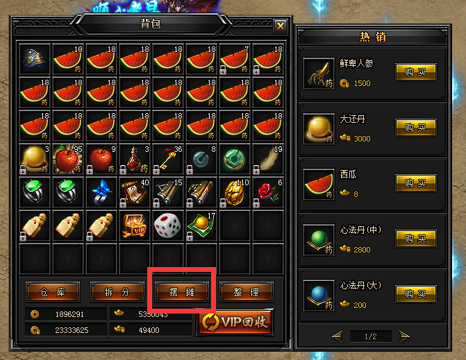 背包界面新增摆摊按钮;