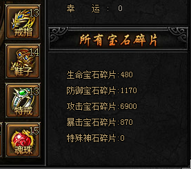 宝石碎片处理:之前的宝石碎片依然可用于升级,是等价的。也可用于兑换一级宝石用于合成。