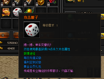 玩家投掷骰子的点数就为玩家增加多少的永久攻击属性值;