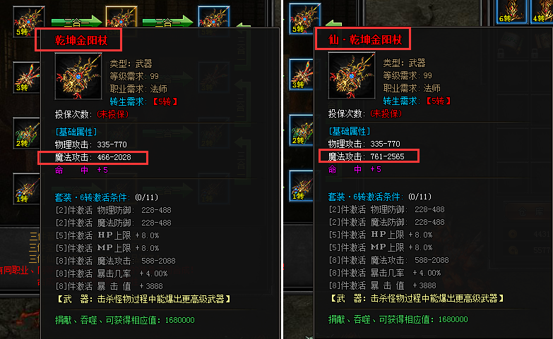 从普通装备到仙品装备,会增加大量的基础属性。这是从小白变向高手的快速捷径。