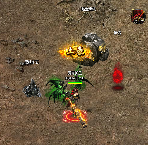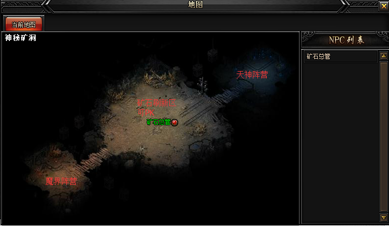 中间的平台为矿石刷新区,并且可自由PK。因为死亡会掉落矿石,所以小心自己不要被偷袭。