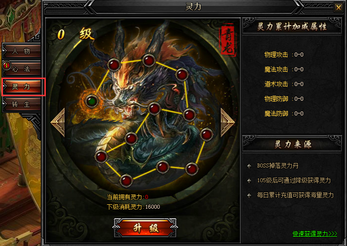 灵力主要通过BOSS掉落灵力丹获取。当玩家达到105级后,还可以通过降低角色等级,获取灵力。