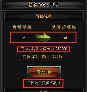 每天可消耗100万铜钱兑换一次灵力,等级越高,降级获得的灵力越多。