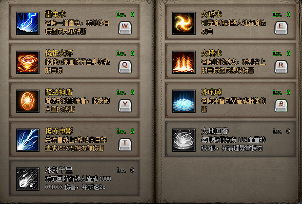 1、传奇系列技能,大地回春及冰封千里