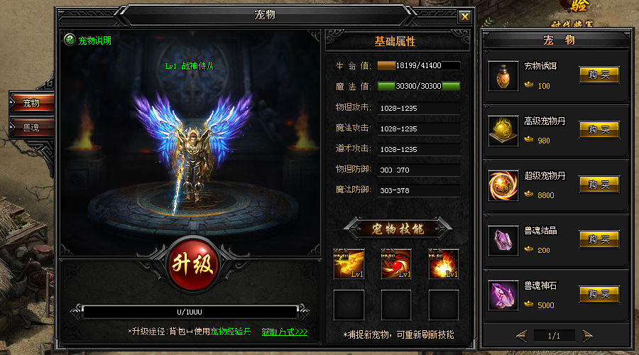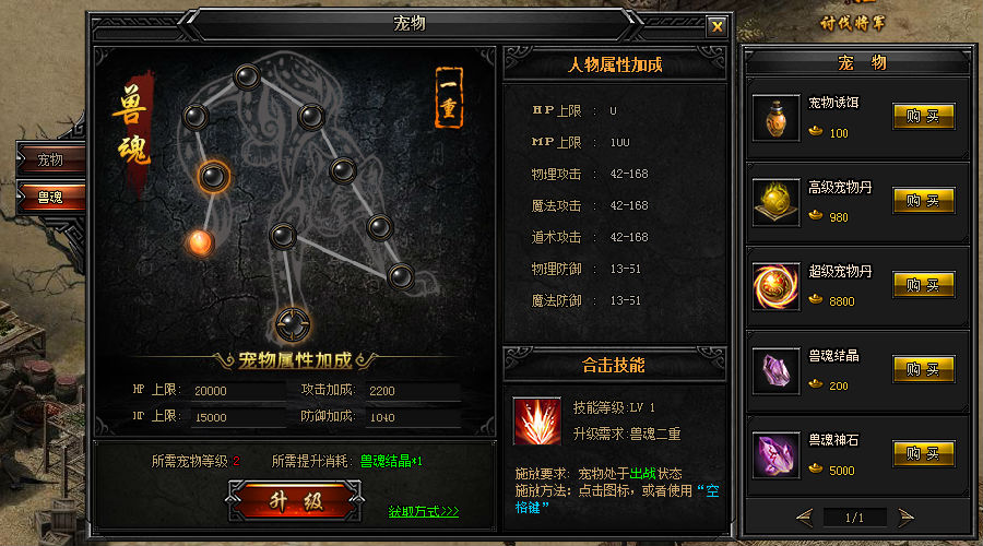 2.升级兽魂需要消耗“兽魂结晶”或“兽魂神石”,而且需要宠物等级达到要求