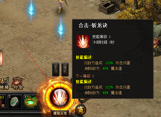 3.当玩家达到兽魂一重时,激活“合击”技能,点击图标或者使用“空格键”,即可使用技能造成大量伤害,同时还能削除敌人的魔法值!