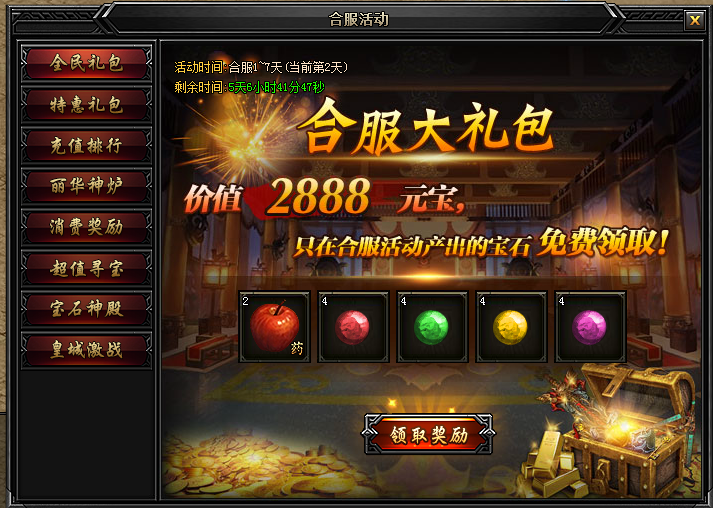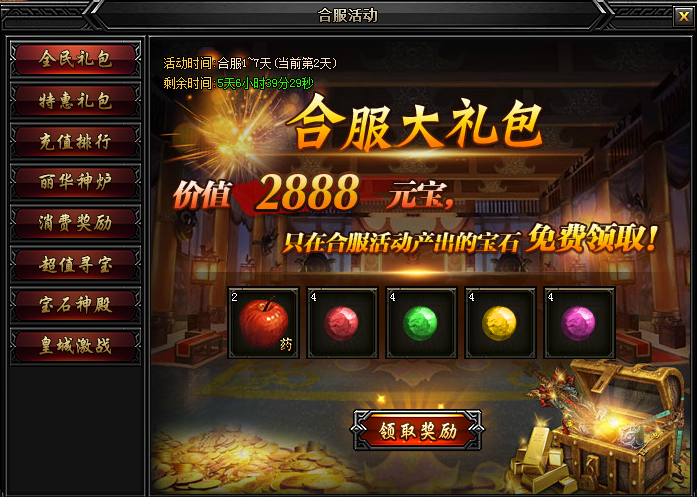 在合服活动期间,达到60级可以免费领取合服大礼包