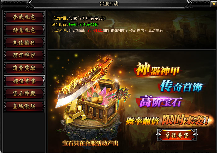 活动期间,神器神甲,传奇首饰,高阶宝石的概率翻倍