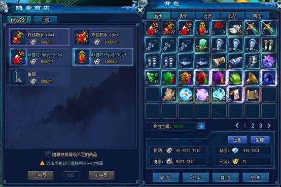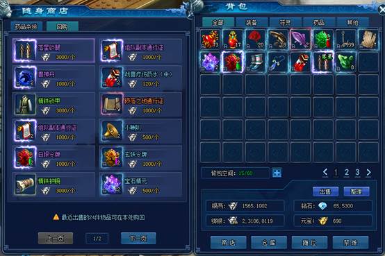 随身商店还可对背包中玩家觉得多余的道具和物品进行回购。