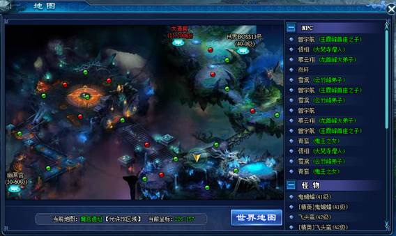 在当前地图中玩家可以查看到当前场景的怪物,NPC