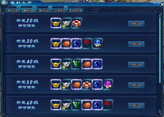 玩家游戏中达到一定等级,即可获得相应的等级礼包,丰富的奖励内容免费等你来拿。