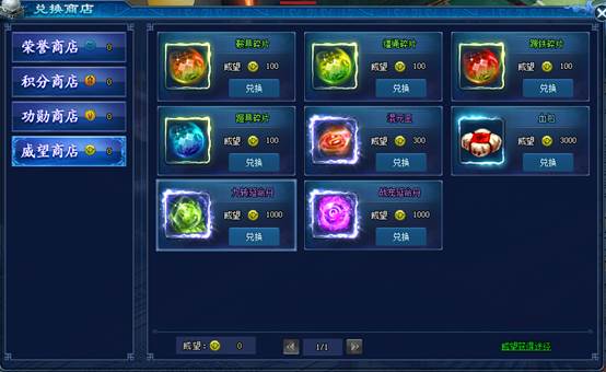 玩家参与帮会活动获得的威望值,可在帮会威望商店中兑换我稀有道具;
