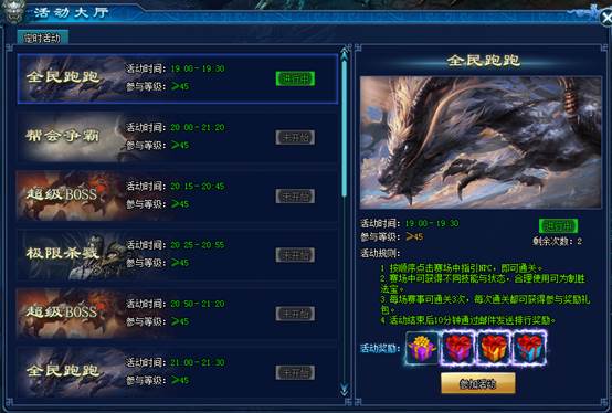 全民跑跑,属于定时活动。每日固定时间段开启。