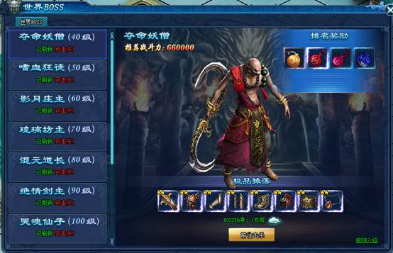 击杀世界BOSS有概率获得极品装备。