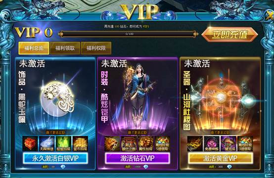 VIP获得与使用:充值钻石消费一定金额即可成为VIP用户。